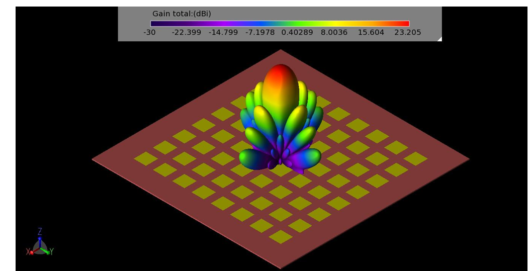 2. Planar (2D) Phased Array Örneği 8×8 patch anten dizisi (28 GHz 5G radar